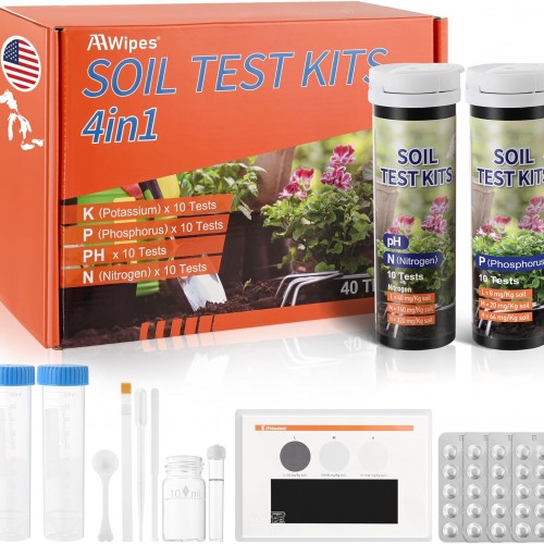 AAwipes Soil Test Kit 4-in-1 for pH, Nitrogen, Phosphorus & Potassium – 40 Soil Testing Kits Upgraded Accurate Nutrient Tester for Garden, Yard, Lawn & Plant Care with Sampling Accessories (J04-40)