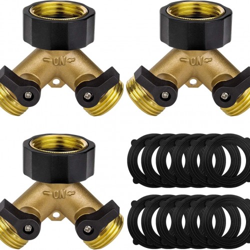 3 Pack Hose Splitter, Heavy Duty Garden Hose Splitter 2 Way Y Valve Hose Connector Splitter Solid Brass Garden Hose Adapter With Extra 12 Rubber Washers, Fit For All Standard Faucet And Garden Hose