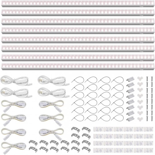 Barrina T5 Grow Lights, Full Spectrum, 2ft 80W (8 x 10W, 500W Equivalent), LED Grow Light Strip for Greenhouse, Plant Grow Shelf, Plug and Play Easy Installation, Yellow, 8-Pack