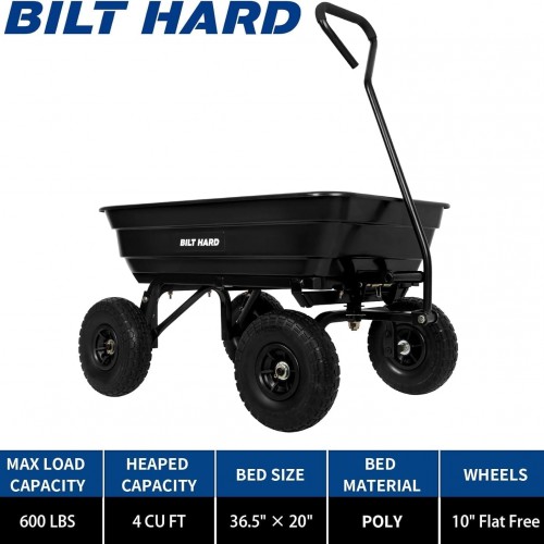 BILT HARD Poly Garden Dump Cart 600 lbs with No Flat Tires, Quick Release, 4 Cu Ft Dump Wagon Heavy Duty for Yard, Outdoor