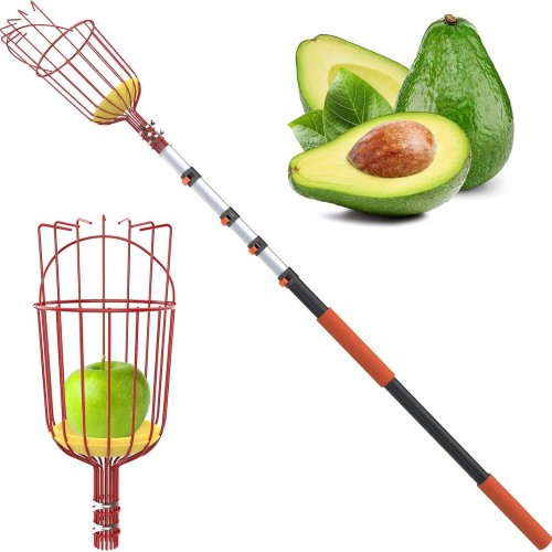 Buyplus 26ft High Reach Fruit Picker with Basket Telescoping, 5-20 Foot Heavy Duty Sturdy Aluminium Telescoping Extension Pole, Easy to Attach Twist-On Metal Basket for Picking Mango Avocado Lemon