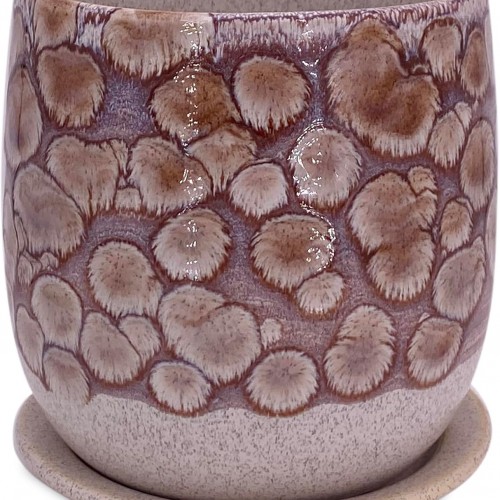 Ceramic Planter Pot, 5in, Reactive Glaze Blue, Indoor Outdoor Usage, with Drainage Hole and Saucer