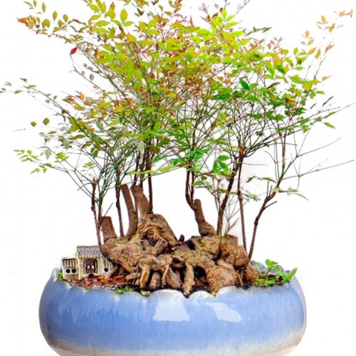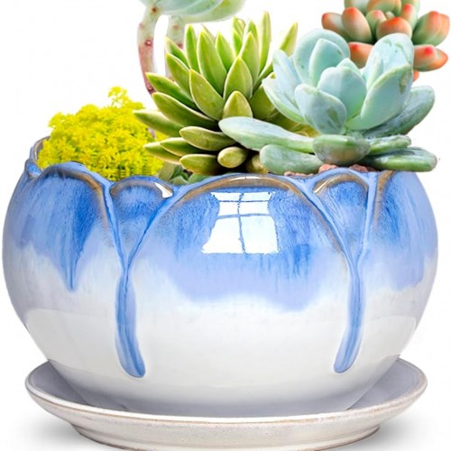Dahlia 8.3” Inch Large/Shallow/Wide Drip Glazed Ceramic Planter/Succulent Pot/Plant Pot, Blue