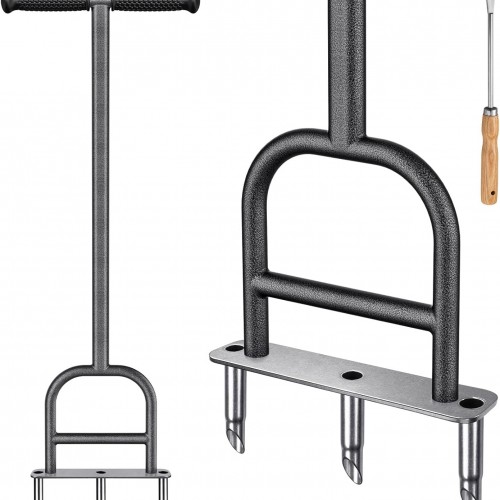Dolibest Lawn Coring Aerator, Stainless Steel 3 Corer Plug Aerator Tool with Soft Rubber Grip, Manual Grass Aerating Tool, Garden Tool & Cleaning Hand Tool for Loosening Soil and Improving Lawn Health