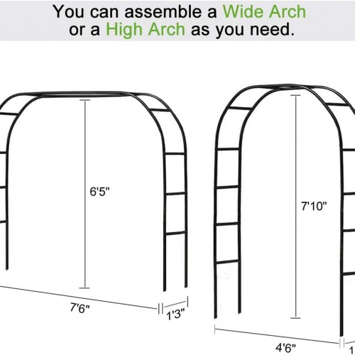 Metal Garden Arbor Wedding Arch 76.8 Inch H x 90.5 Inch W 94.5 Inch H x 55 Inch W Assemble Freely 2 Sizes for Various Climbing Plant Roses Vines Bridal Party Decoration Pergola Arbor (Black)