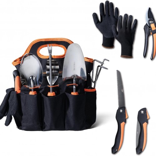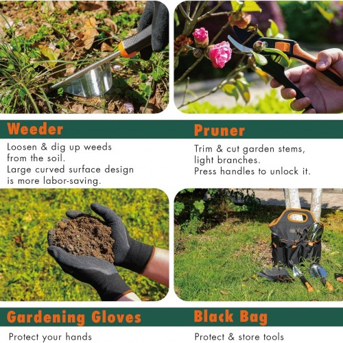 DTRK 8-Piece Large Garden Tool Set 304 Stainless Steel Garden Tool Kit with Handbag,Pruning Shears,Gloves Heavy Duty Gardening Hand Tools with Non-Slip Rubber Grip,Ideal Gifts for Women & Men Orange