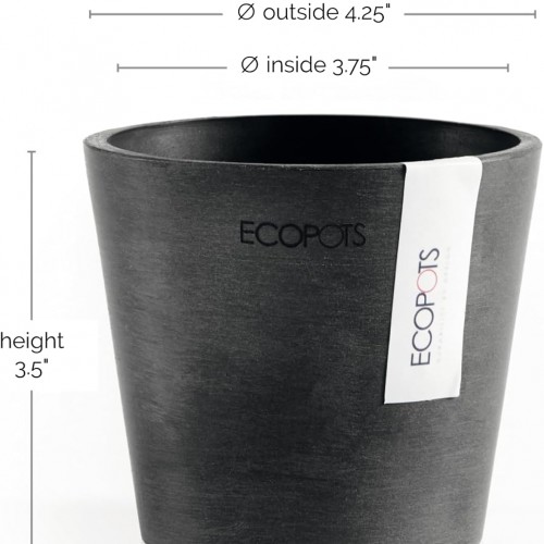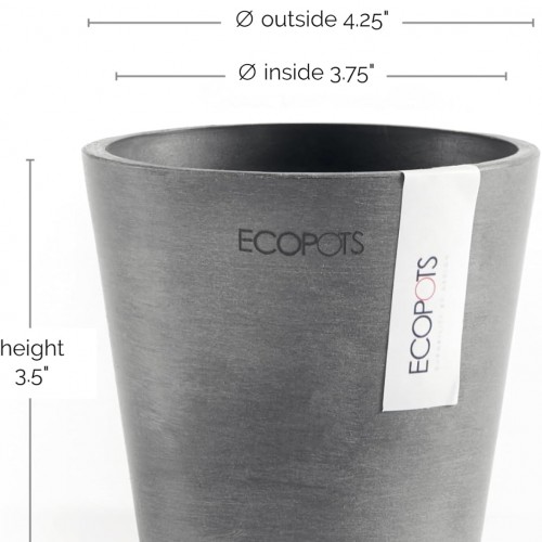 Ecopots Amsterdam Mini Durable Modern Round Recycled-Based Composite Flower Pot Planter, Grey, 4″