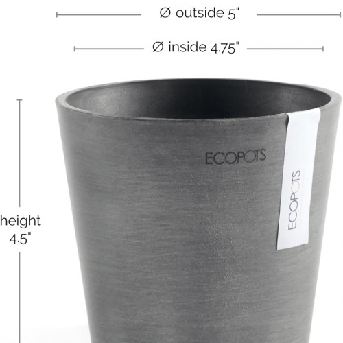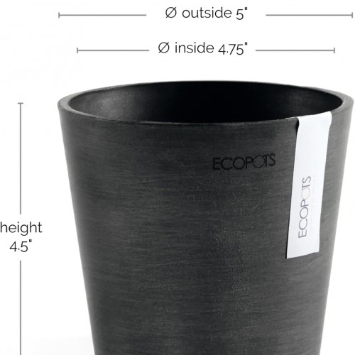 Ecopots Amsterdam Mini Durable Modern Round Recycled-Based Composite Flower Pot Planter, Grey, 5″
