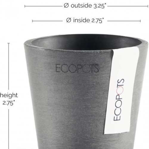 Ecopots Amsterdam Mini Durable Modern Round Recycled-Based Composite Flower Pot Planter, Grey, 3″