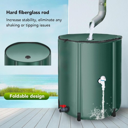 Rain Barrel, 53 Gallon Portable Foldable Rain Water Collection Tank Collapsble Rainwater Storage Container Water Collect System Downspout with 2 Spigots for Garden Landscape