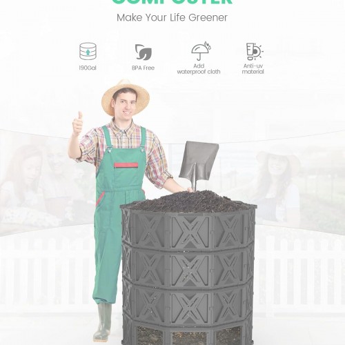 Large Compost Bin – 190 Gallon (720 L) Garden Composter with Better Aeration System, Easy Assembling/BPA Free/Sturdy/Outdoor Compost Tumbler