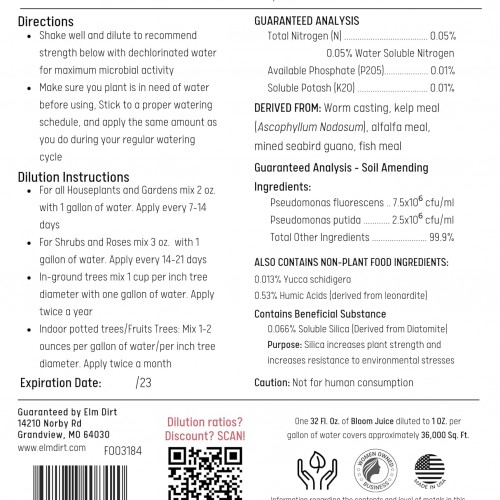 Elm Dirt’s Bloom Juice for All Flowering Plants (1-32 oz Bottle)