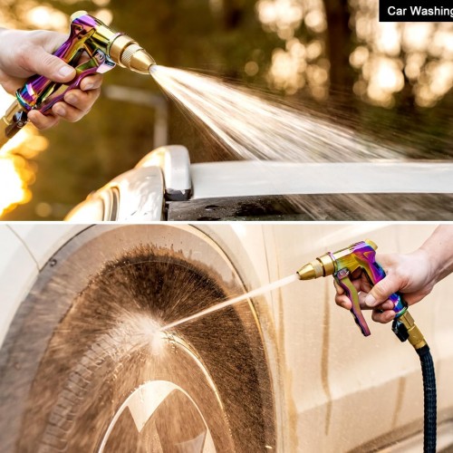 ESOW Heavy Duty Metal Garden Hose Nozzle, High Pressure Water Hose Nozzle with 4 Spray Patterns Rotating, Ideal for Outdoor Lawn & Garden Watering, Car & Pet Washing, Rainbow