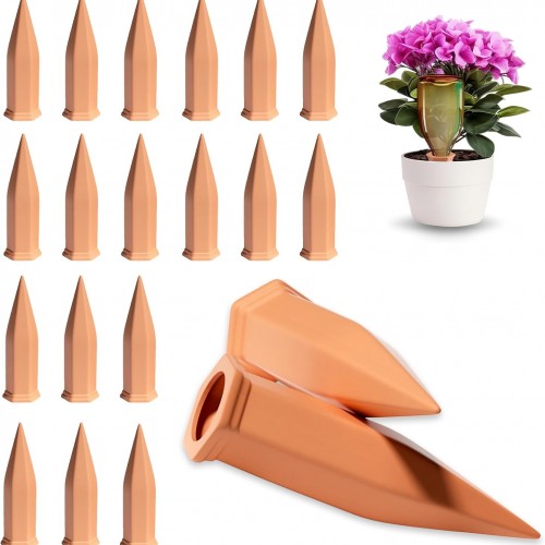 Terracotta Plant Watering Stakes, Self-Watering System for Indoor and Outdoor Plants, 20-Pack