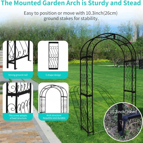 48.8″ W x 83.8″ H Garden Arch, Black Sturdy Metal Iron Arbor, Courtyard Cast Trellis for Various Climbing Plant, Outdoor European-Style Archway Wedding Ceremony Party