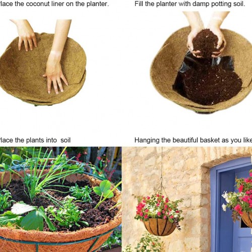 24 InchCoco Liners for Planters 2 PCS Round Basket Shaped Coconut Fiber Replacement Liners