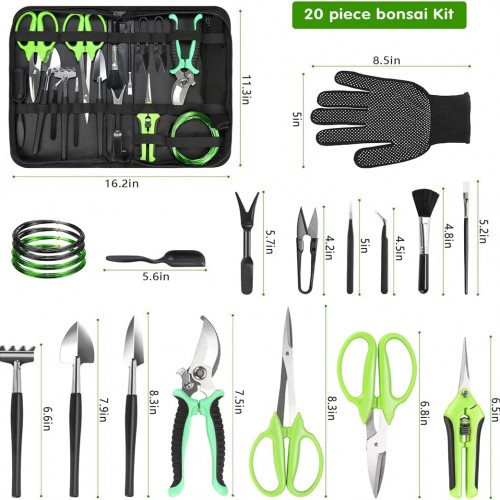 Bonsai Tool Kit, 21 Pcs Gardening Tools Set Include Garden Pruning Shears, Plant Trimming Scissors, Training Wire, Succulent Tool, Leather Bag Storage, Gardening Gifts for Women, Plant Lovers