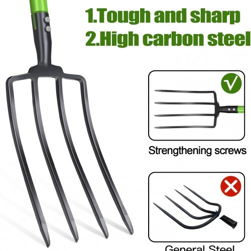 GARDENWORK Garden Fork,Pitchfork for Garden Digging Compost Spading,4-Tines Pitch Fork with Steel Handle and Strengthen Fork Head 45inches (with Protective Gloves)