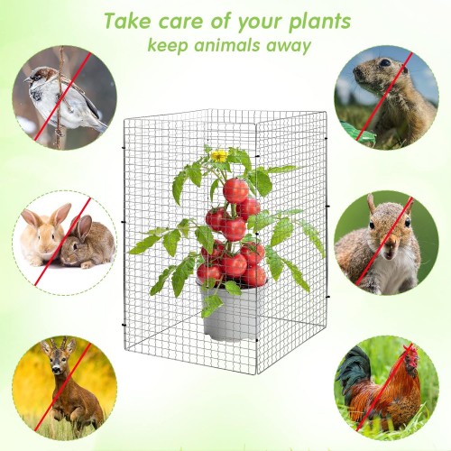 Geosar 40 Pcs/10 Packs Chicken Wire Plant Protectors 11.7 x 19.5 Inch Mesh Plant Protection Cage from Animals with U Shaped Garden Stakes and Nylon Tie for Outdoor Garden Flowers Vegetables
