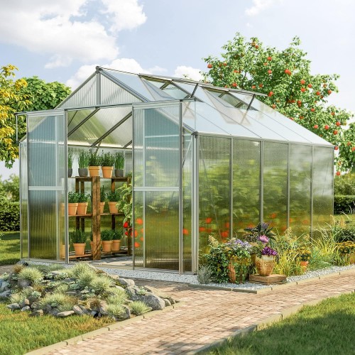 Greenhouse Topas 5 Aluminum Frame 7.4 x 10.6 ft with Approx. 8 mm Polycarbonate Panels