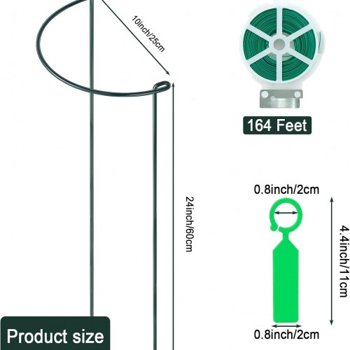 12 Pack Plant Support Stakes, Peony Cages and Supports Large 10″ Wide x 24″ High Tall Peony Ring Supports, Garden Plant Stakes for Outdoor Plants Rose, Tomato, Hydrangea, Flowers