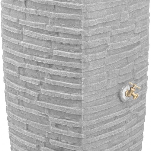 Good Ideas Rain Barrel, Faux Slate Riverwalk w/ 2 Brass Spigots, 50-Gal, Light Granite