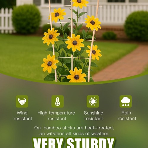 3ft Natural Bamboo Plant Stakes for Tomatoes, Beans, Flowers, Potted, Climbing Plants 25pcs