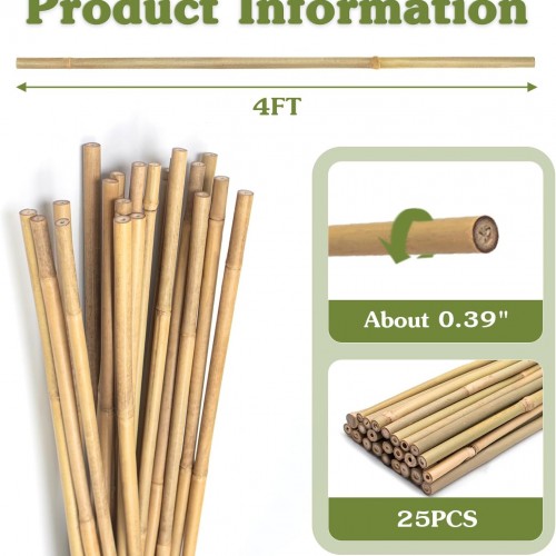 Plant Stakes 4FT, Natural Bamboo Stakes, HAINANSTRY 25Pcs Sturdy Bamboos Garden Stake, Bamboo Sticks for Plants, Beans, Indoor and Outdoor Climbing Plants, Tomato Vegetable Stakes for Garden
