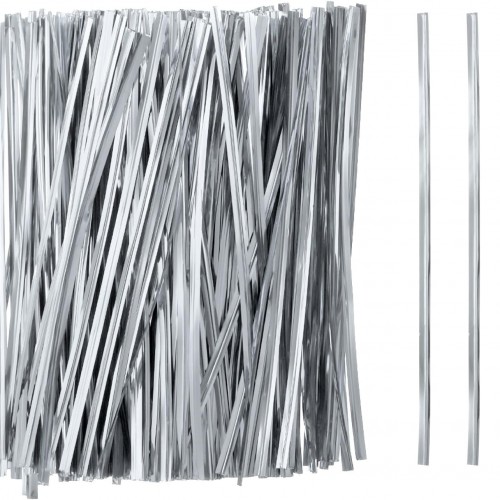 HARFINGTON 800pcs Bag Twist Ties 6″ Reusable Plastic Metallic Twist Ties Wire Cable Ties for Party Bread Candy Cake, Silver