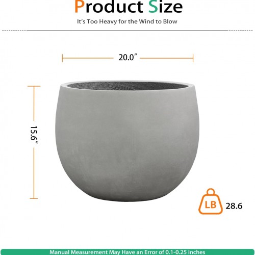 Ball Concrete Planter Outdoor Indoor, Large Tall Cement Plant Pots for Trees Flowers (Gray, 20 inch)