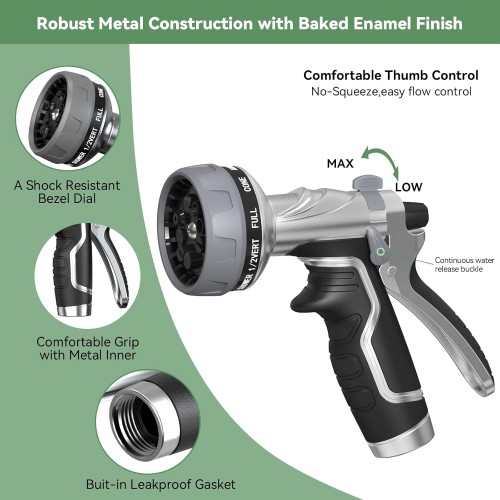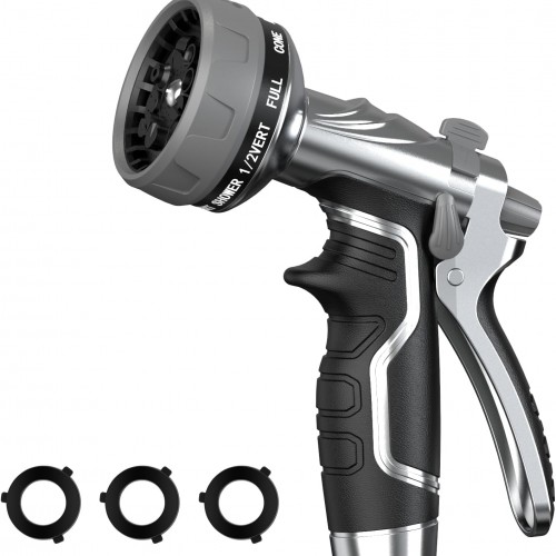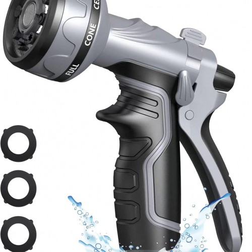 Garden Hose Nozzle, Heavy Duty Metal Water Hose Nozzle with 9 Adjustable Spray Patterns