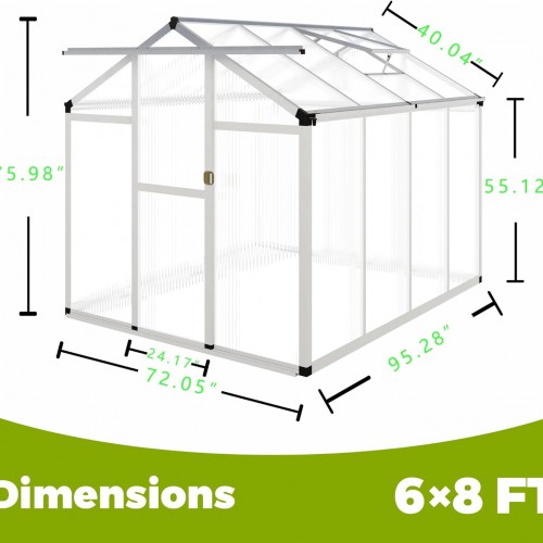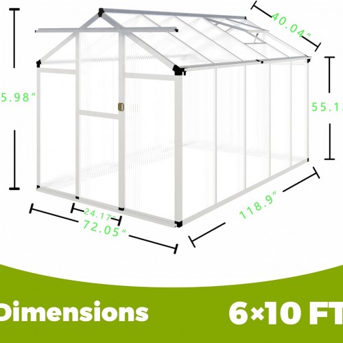 6 x 10FT Greenhouse for Outdoors,Polycarbonate Garden Backyard,Silver