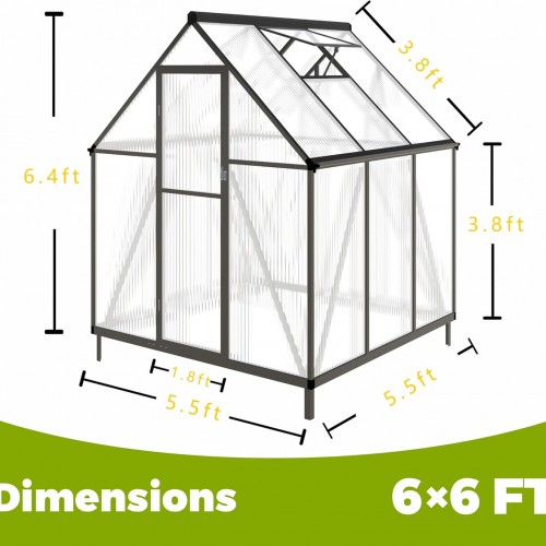 6 x 6 FT Greenhouse for Outdoors,Aluminum Large Walk-in Greenhouse,Dark Gray