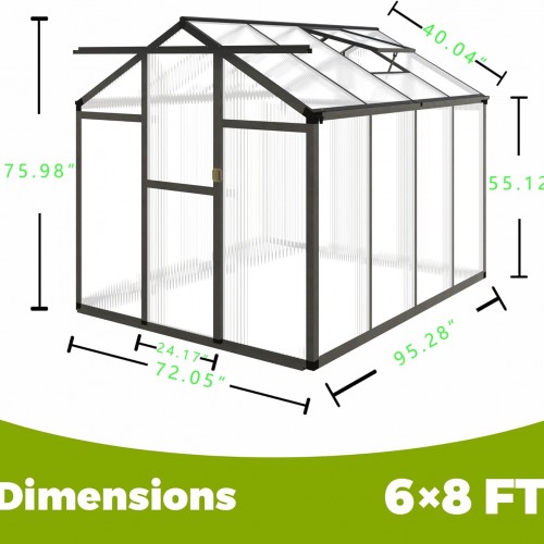 6 x 8 FT Greenhouse for Outdoors,Aluminum Large Walk-in Greenhouse,Dark Gray
