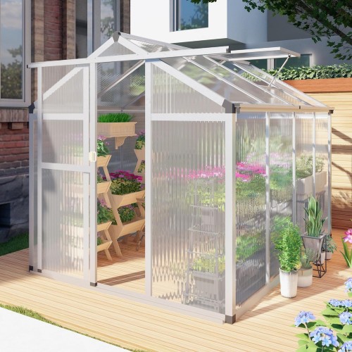6 x 6FT Greenhouse for Outdoors,Polycarbonate Garden Backyard,Silver