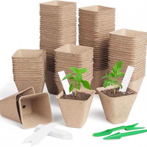 3in Square Biodegradable Peat Pots for Seed Starting, Plant Nursery Pots with (12)