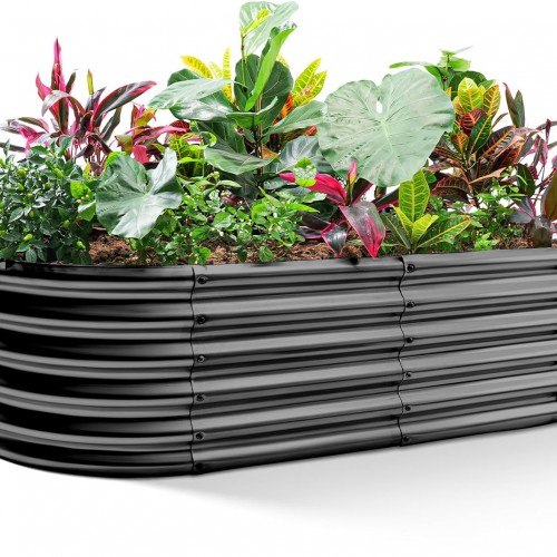 Land Guard Galvanized Oval Large Metal Raised Garden Bed with Legs for Vegetables (Beige)