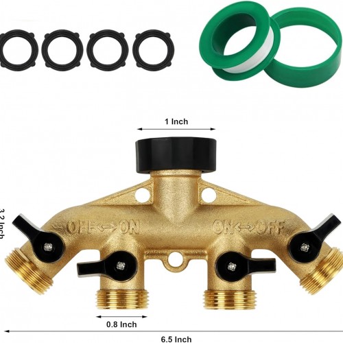4 Way Brass Hose Splitter, 3/4″ Heavy-Duty Brass Garden Hose Splitter, Garden Hose Adapter Connector