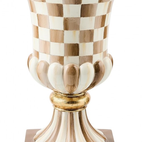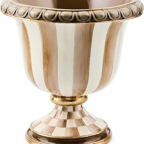 MACKENZIE-CHILDS Tabletop Urn, Decorative Centerpiece for Table, Brown-and-White Mocha Stripe