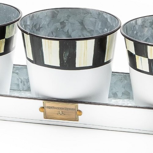 MACKENZIE-CHILDS Galvanized Herb Pots with Tray, Metal Herb Planters, Set of 3, Spectator