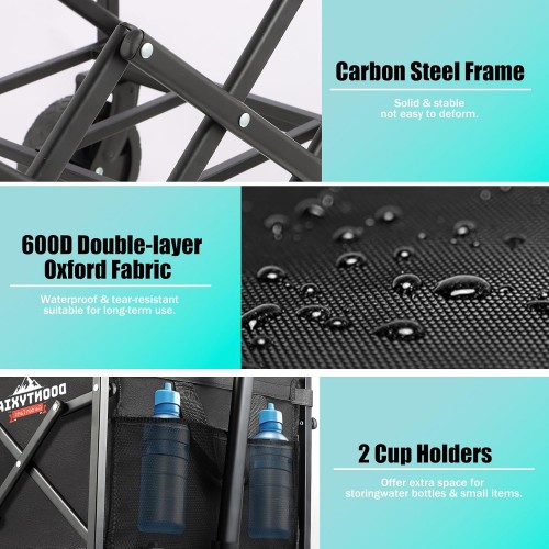 Collapsible Wagon, 440lbs Load Capacity, Wagon carts Foldable with Wheels, Heavy-Duty Steel Frame, 600D Oxford Fabric, Ergonomic Handle, Wear-Resistant, Perfect for Outdoor, Garden, Grocery (440LBS)
