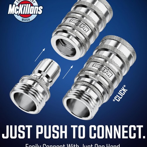 McKillans® 2025 Automatic Garden Hose Quick Connect [Universal FIT] – Stainless Steel Quick Connect Hose Fittings – Water Hose Connectors – Quick Disconnect Adapter – Instant Connection – 5 Pc Kit