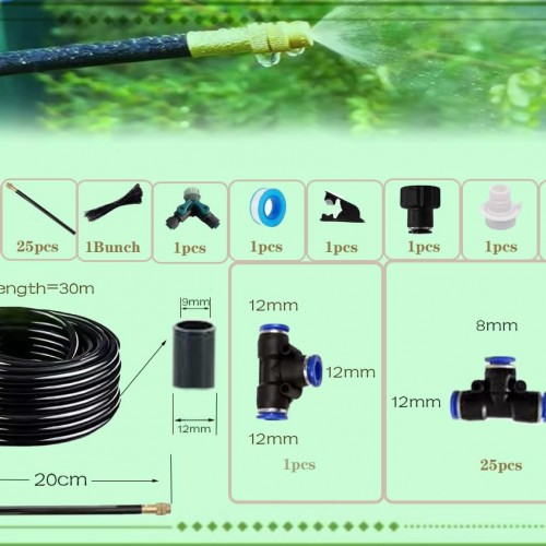 New drip Irrigation kit, Automatic Garden Watering System, Quick Connector and 360-degree Bending Dropper atomizing Copper Nozzle, Garden Plant Lawn Courtyard Watering System.(25spray nozzles)