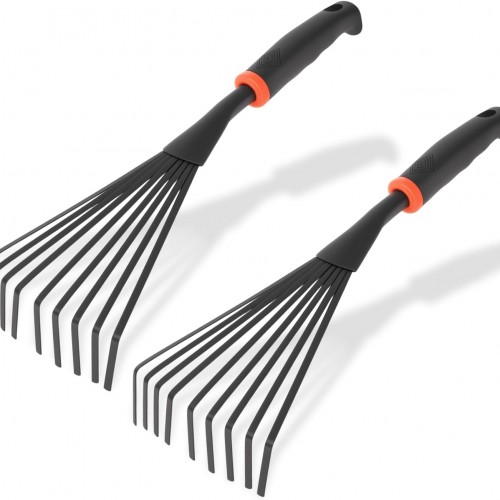 2 Pcs Gardening Hand Rake, 14.5″ Alloy Steel Short Handle Shrub Rake for Soil Loosening, Planting and Spreading Mulch, Raking Flower Beds