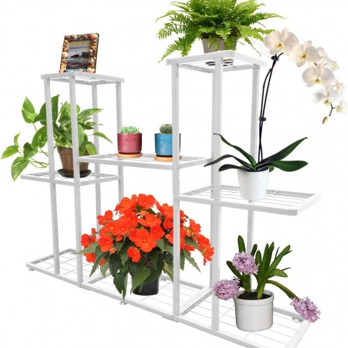 4 Tier 11 Potted Metal Large Plant Stand for Indoor Outdoor Flower Pot Display Planter Shelf, White