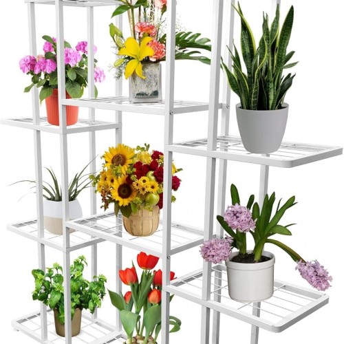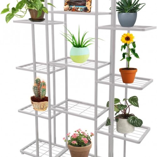 4 Tier 11 Potted Metal Large Plant Stand for Indoor Outdoor Flower Pot Display Planter Shelf, White