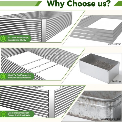 2 Pack 8x4FT Tall Galvanized Raised Garden Bed Outdoor,Metal Garden Bed for Vegetables,Steel Raised Beds for Gardening,Above Ground Garden Box for Flower