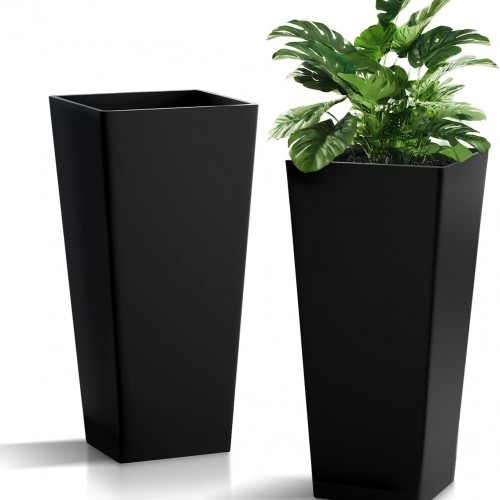 Taper Outdoor Planter, Indoor Resin Plant Pots, 2-Pack (28 inch, Black)