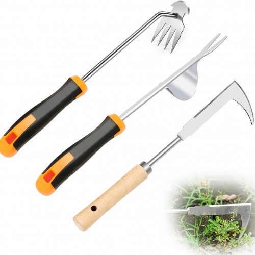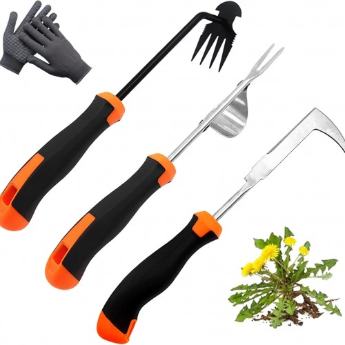 Weed Puller Tool, 78″ Manual Weeder Remover Tool, 2 in 1 Stand Up Rake for Garden