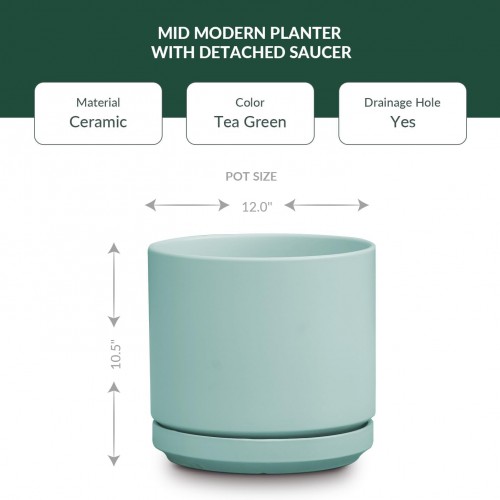 Ceramic Mid Modern Planter Pots with Detached Saucer – Indoor/Outdoor Plant Pots with Drainage Hole